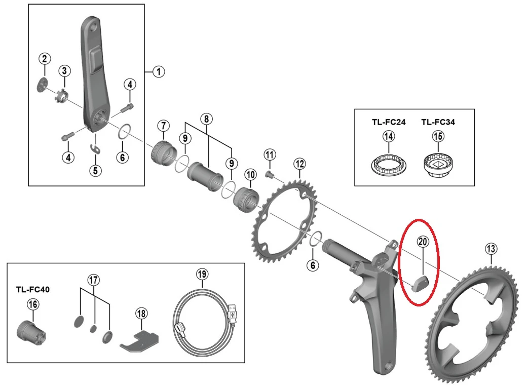 Shimano Dura Ace FC-R9200-P Powermeterkurbel Abdeckkappe rechts.